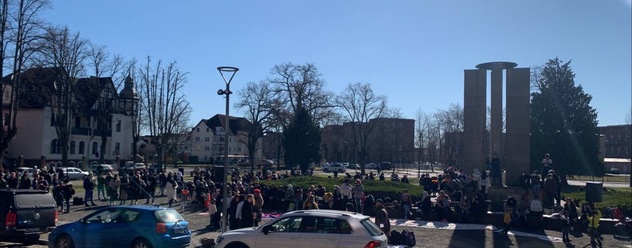 On 08.03.2022, we organized an action in Rathenow on the occasion of Women’s Day. About 200 people came, mainly refugee women with children, many of whom live in shared accommodation. The aim was to draw attention to the grievances in the accommodations in Havelland, to criticize the hardly taking place integration, the non-transparent and complex procedure of issuing birth certificates and residence permits and to ask the district administrator Roger Lewandowski to initiate concrete changes. Organizers of the action were Refugees Emancipation, Women in Exile, Seebrücke Potsdam and Pangea Projekt.